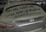Someone had left a message on the rear windscreen. It seemed like they had written it using their finger. It looked fresh.