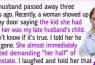 The weight of betrayal, combined with the complexities of inheritance and responsibility, can be almost unbearable. This is the case for a woman who, after the loss of her husband, finds herself confronting a painful and unexpected dilemma. She explained what happened. My husband passed away nearly three years ago, leaving me to raise our 8-year-old child on my own. Since his death, I’ve uncovered truths about him that would have ended our marriage had he been alive. About six weeks ago,